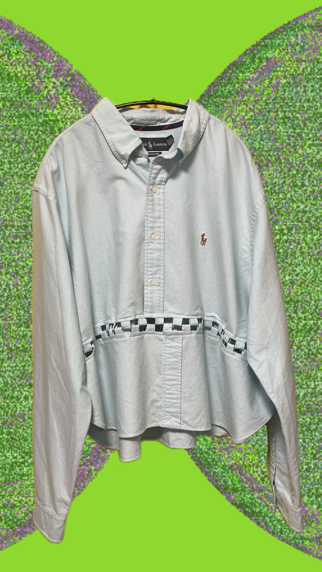 usedのラルフローレンシャツのウエスト部分にデザインを入れてリメイクしたものです。